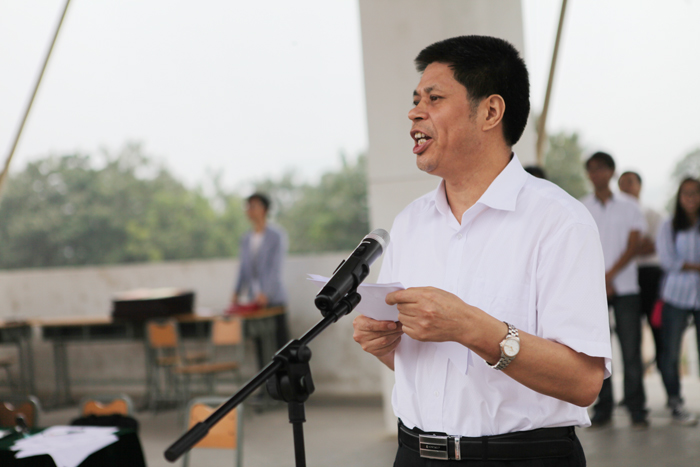 焦胜军宣读二本线以上学生免学费奖励表彰决定