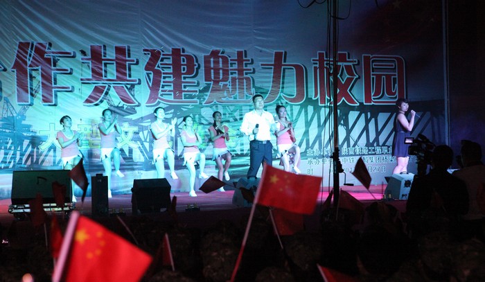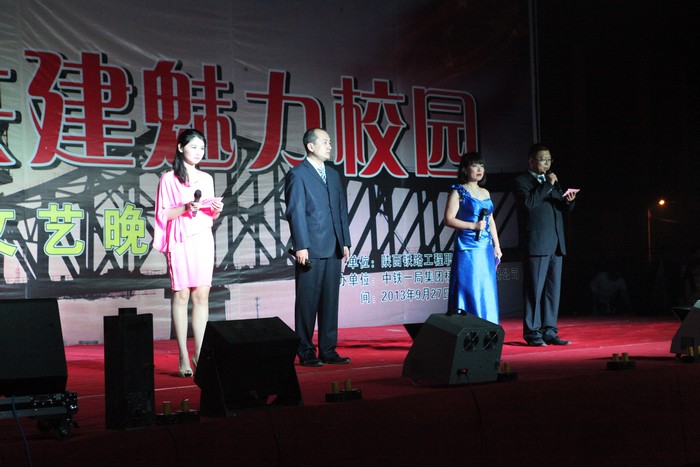 晚会上,陕铁院师生与桥梁公司职工同台联欢,表演了舞蹈、歌曲、朗诵、相声等形式多样、精彩纷呈的文艺节目,赢得了台下观众的阵阵掌声。高新校区运动场上,彩旗猎猎,观众热情高涨,台上台下互动频繁友好,其中,我院91级毕业生、桥梁公司职工高群作为节目主持人,更是激发了同学们立志成才、报效祖国、感恩母校的愿景。