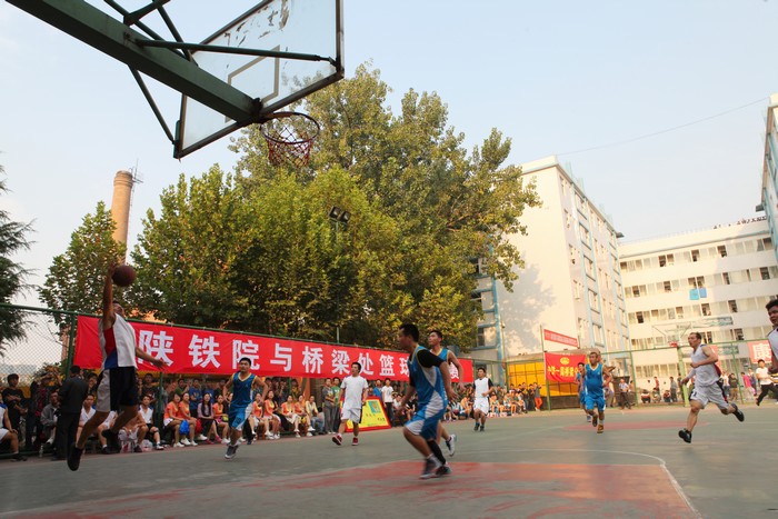 十一来临之际,9月27日下午,陕西铁路工程职业技术学院师生篮球联队与中铁一局集团桥梁工程有限公司篮球队,在临渭校区塑胶篮球场举行了一场精彩激烈的友谊赛,比赛吸引了包括王晖书记在内的大批师生现场助威观战。最终陕铁院篮球队微弱优势取得了比赛胜利。