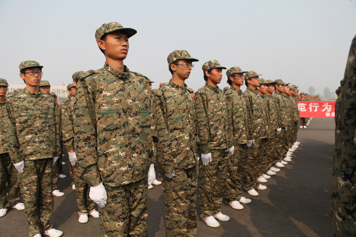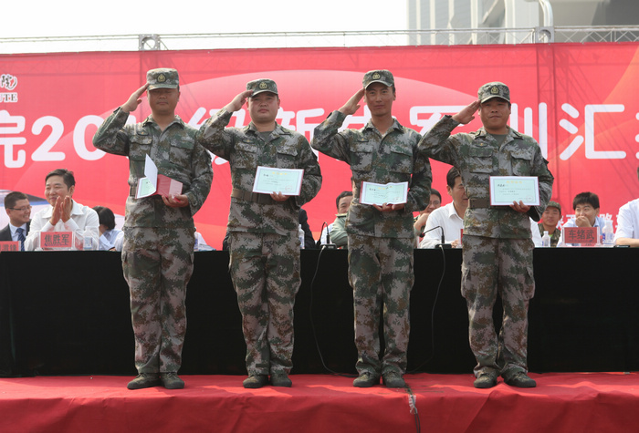 受表彰的军训优秀学员上台领奖