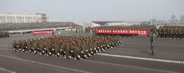 在庄严的国歌声中,2013级新生阅兵暨总结表彰大会正式开始。王长友在部队领导的陪同下,逐一检阅了各军训连队,并向军训学员致以亲切的问候。随后,1500多名新生组成的十支方阵队列整齐、步伐矫健、口号嘹亮,依次通过主席台,接受领导检阅。学员们抖擞的精神、整齐的步伐充分展现了当代大学生奋发进取、团结向上的良好精神风貌。分列式表演结束后,参训的新生连队代表进行了队列会操表演。立正、稍息、跨立、停止间四面转法、齐步行进与立定、跑步行进与立定……全体学员们精神饱满、动作整齐,充分展示了半个月来艰苦训练的收获和成果。