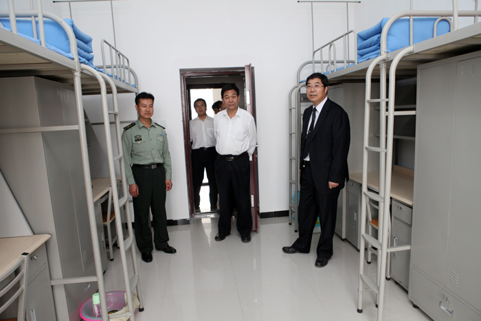 会前,王晖、王长友在部队领导的陪同下到新生宿舍检查内务
