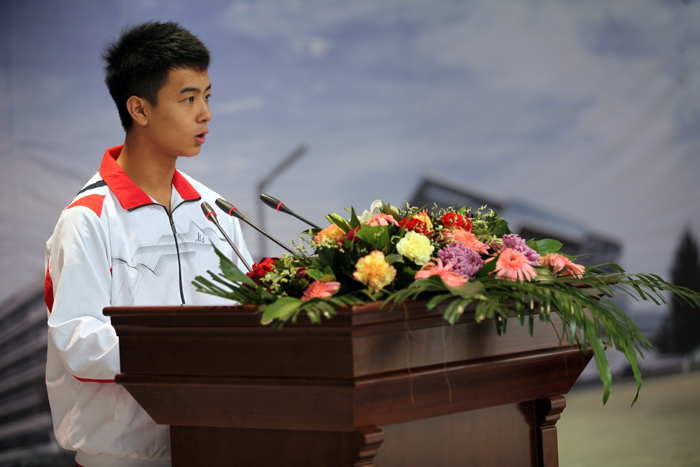 学生代表、轨道3121班的袁春宇同学在会上作了发言。他表示,作为陕铁院的一名在校大学生,能够与众多校友前辈们一起见证学院的光辉历史、荣耀今天和希望明天,感到无比的荣光。他代表陕铁院所有在校学生庄严承诺:与祖国齐奋进,与时代共发展。在校刻苦学习,苦练技能,早日成为国家有用之才,为母校争光添彩!