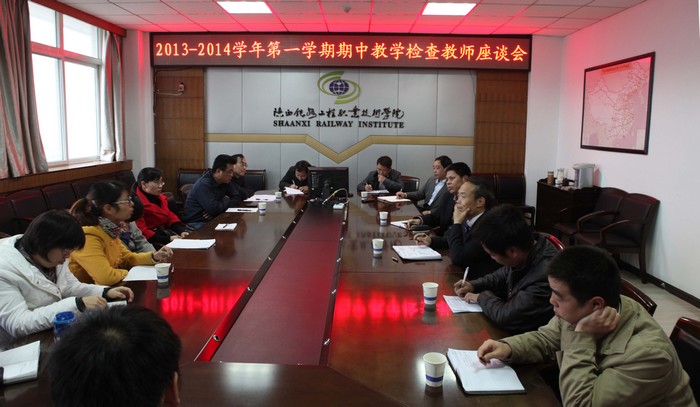 11月8日下午,学院在11楼会议室召开了2013-2014学年第一学期期中教学检查教师座谈会,学院党委副书记车绪武、副院长王闯出席会议,来自各系(部)的17位教师代表及教务处代表参加了会议。