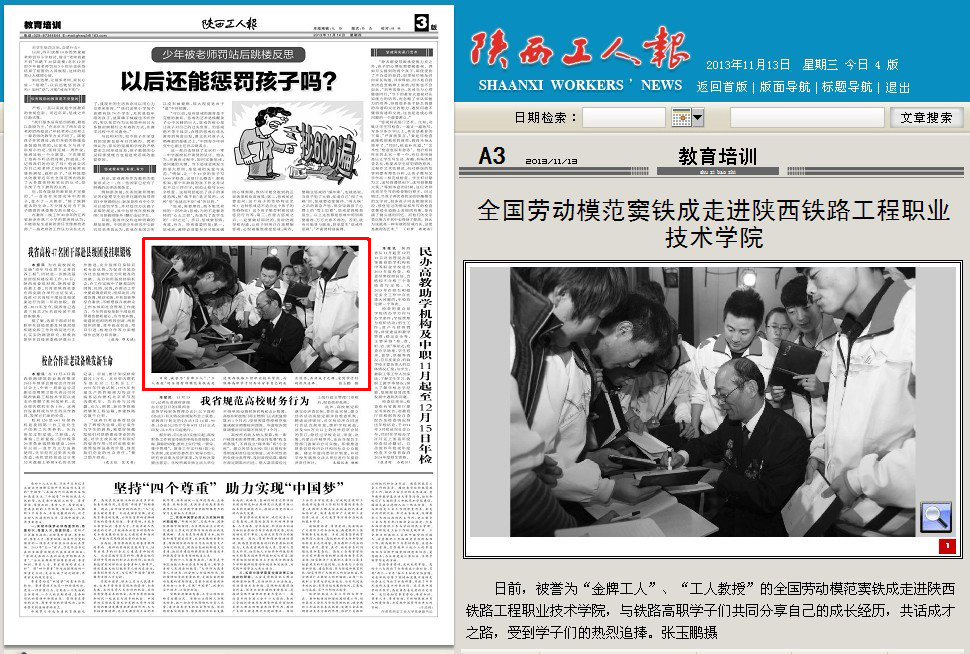 2013年11月14日陕西工人报第3版题:全国劳动模范窦铁成走进陕西铁路工程职业技术学院