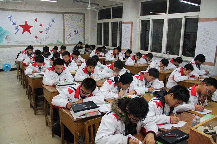 同学们认真书写家书