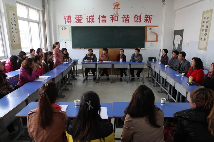 渭南师范学院教育管理学院2014届思政专业21名毕业生于2013年10月10来院实习,本周实习即将结束。为了总结实习经验,欢送实习同学,学院思政部于11月19 日早,在A504组织召开了实习生座谈会暨欢送会。参加座谈会的有我院思政部主任李新萍、渭南师范学院实习生带队老师孙百红,思政部全体实习生指导老师以及渭师院全体实习生。