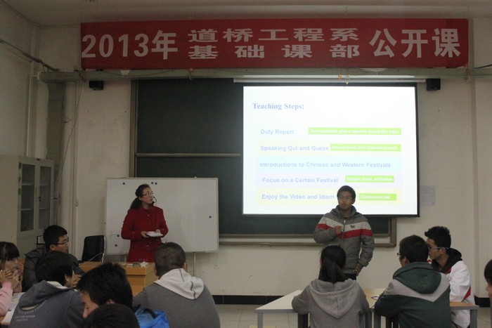 ◆道桥系和基础课部联合举办公开课。11月22日下午,道桥工程系和基础课部在S604教室联合举办了2013年教师公开课。两系部三名教师在公开课中灵活运用工程案例模拟演示法、任务驱动法、提问回答法、启发引导法等多种教学方法,效果良好,受到好评。