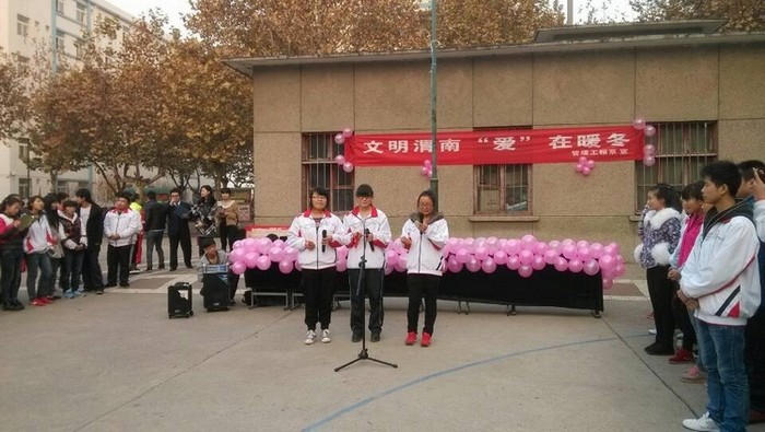 ◆管理系举办创文系列活动。近日,管理工程系组织学生分别在学院B楼小操场和站北路举行了“文明渭南,‘爱’在暖冬”公益宣传和上街义务劳动活动。