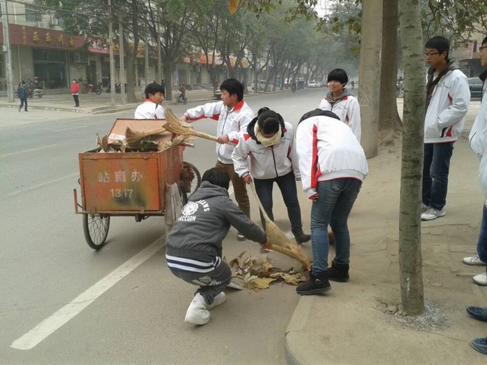 管理系学生对站北路卫生进行清扫