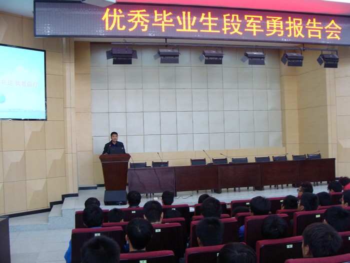 11月27日下午,思政教研部和铁道工程系联合举行校友报告会,邀请学院校友段军勇为铁工系2013级学生作了题为“心怀感恩 携手共进 执着前行”的报告。400余名师生聆听了报告会。 会上,段军勇介绍了自己工作七年间连续创造全集团公司最年轻的副科级干部、正科级干部、从事职业工种最多、岗位最全面的职场经历,告诫学生坚定理想和信念,在学校要注重培养自己的“智商、德商、情商、逆商”,积极挑战自我、挑战未知,创造人生的精彩和辉煌。(李莉) 报告会现场