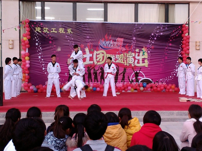 演出在渭南职业技术学院精心编排的《爵士舞》中拉开帷幕,舞蹈活力四射,展示了青年学子青春靓丽的风采和朝气蓬勃的奋进精神。造价学社的歌曲《执着》,展现了学子们执着于精益求精打造精品社团的信心和勇气。自由搏击协会的特技表演、龙搏跆拳道协会的跆拳道表演、风火轮轮滑协会的轮滑特技表演,充分体现了力量与技巧的良好结合,让观众大饱眼福,惊叹不已。裁判协会别出心裁,带来一曲吉他弹唱《睡在我上铺的兄弟》,让友谊更近一层。动漫研讨社虽然是新成立社团,但个性十足的服装走秀,引得观众阵阵喝彩。演出还得到给排水设备维修协会、太极协会、墨梅斋书法协会、护校队、铁工系、建工系文艺部的大力支持,让演出更是锦上添花。(姚天魁)