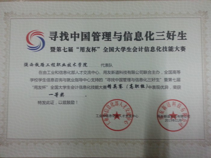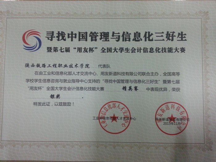 12月5日,“寻找中国管理与信息化三好生”暨第七届“用友杯”全国大学生会计信息化技能大赛——全国精英赛在北京举行,学院会计3112班学生汪小娟代表学院参赛,与来自全国各赛区的100名本科和高职(其中本科生30名)管理信息化精英学生同台竞技,以优异成绩获得第一名,学院也同获一等奖。同时,在前十名精英赛中为个人和学院获得银奖。指导教师陈辉获优秀指导教师称号。