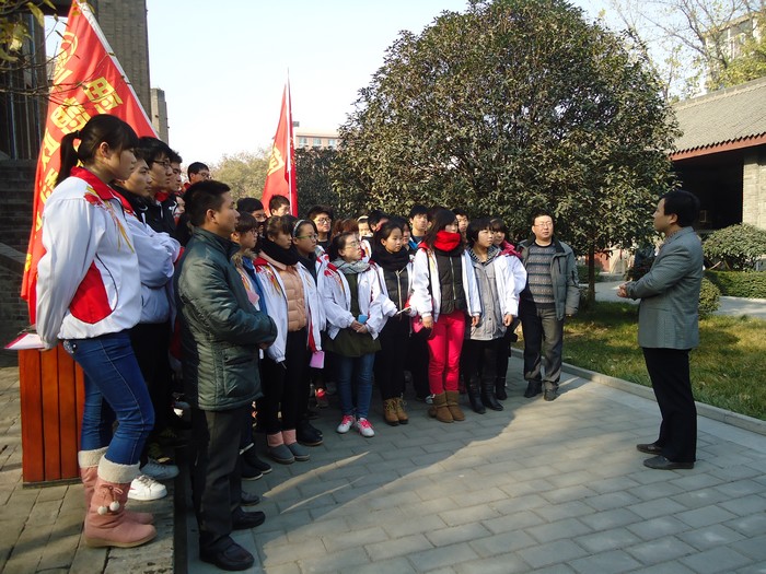红色文化研读会会员与建筑工程系学生代表在西安事变旧址进行现场教学