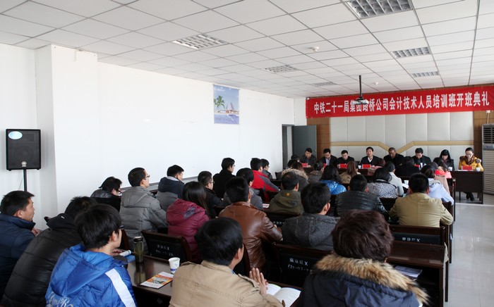 12月16日上午,中铁二十一局路桥公司会计专业技术员培训班开班典礼在陕铁院A楼12楼会议室举行,学院院长王长友、副院长焦胜军,中铁二十一局路桥公司董事长王亮、副总经理吴改林出席会议,学院管理工程系、继续教育部,公司财务部、人力资源部负责人以及会计班、物资计划班43名学员参加了会议。