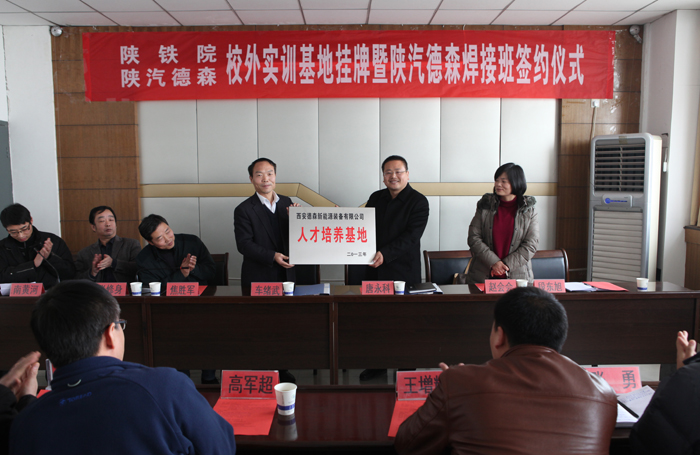 为了加强校企合作,推进工学结合,不断提高人才培养质量,陕铁院与西安德森新能源装备有限公司经过前期酝酿、实地考察,最后达成联合培养焊接专业学生意向,成立41人的企业订单班。此次签约是机电系继2013年1月“中联焊接班”之后校企合作的又一硕果,对于深化校企合作模式,提高办学质量,服务区域经济将产生更加积极的影响。