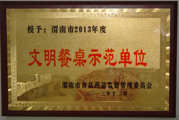 12月19日,渭南市食品药品监督管理委员会对学院高新校区食堂进行了表彰,授予“文明餐桌示范单位”奖牌。