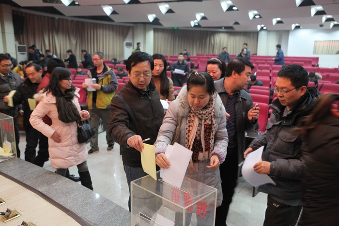 与会人员为处职干部打分投票