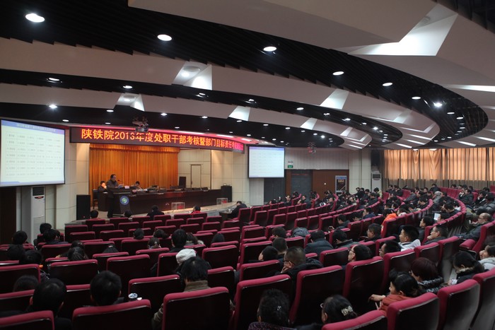 12月25日,学院处职干部考核暨部门目标责任考核测评大会在学术报告厅举行。学院七位院领导出席会议。全院副科级以上干部、院工会委员、各分会主席、中级及以上职称人员共200余人参加会议。党委组织部部长蒋平江主持会议。