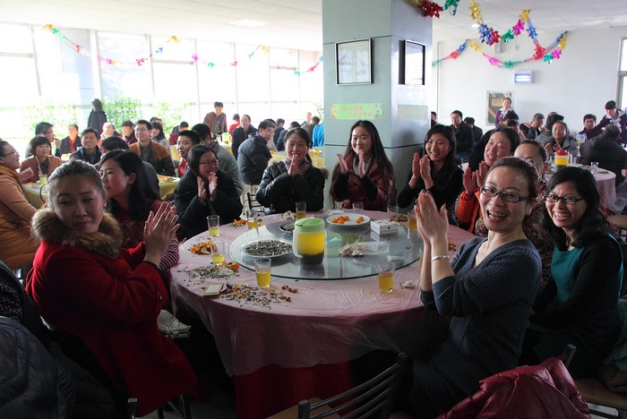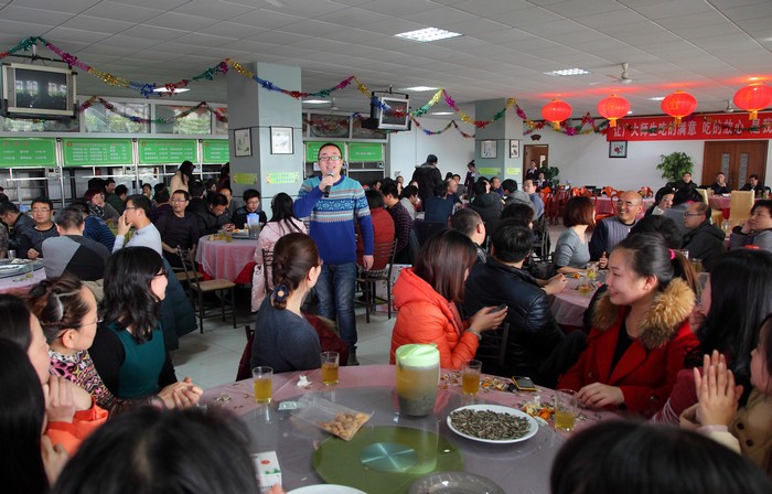 一杯清茶,一盘瓜子,温馨和谐的氛围中,一曲曲由教职工自发演唱的曼妙歌曲在大厅里回荡……1月4日中午,学院工会在临渭校区餐饮中心举办的迎新年“团拜会”简朴、温暖,给每一位在场的教职员工都留下了深刻的印象。(季露) 院党委书记王晖致辞并率班子成员向教职工拜年 清茶伴歌韵味长 掌声阵阵,其乐融融
