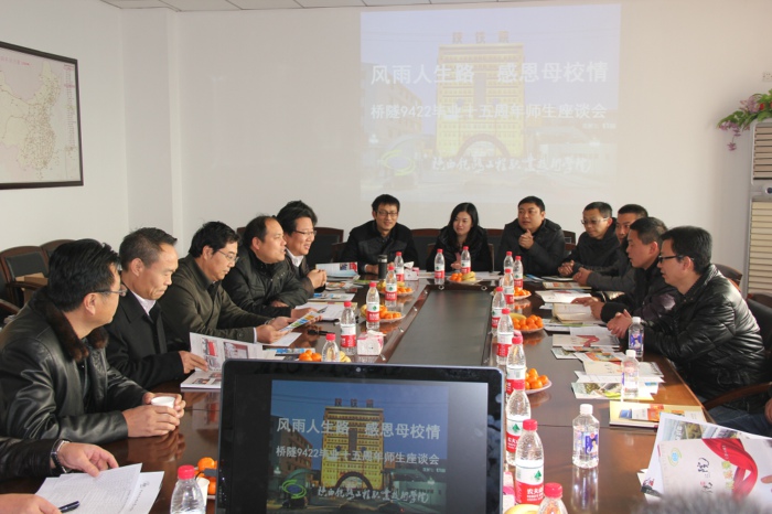1月5日,学院桥隧9422班16名校友在毕业十五周年之际,重返母校共叙师生情。学院党委书记王晖、党委副书记车绪武出席会议,辅导员、部分代课教师及校友工作处有关同志参加了座谈会。