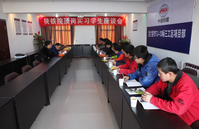 与中铁二十三局宝兰客专TJ-13标三工区领导及实习学生座谈