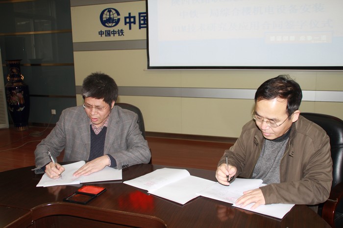 2月27日下午,陕铁院建筑工程系与中铁一局建安公司签署BIM技术合作协议,这是该局首例BIM技术合作应用项目。根据合同约定,建筑工程系将为中铁一局综合服务楼项目提供机电设备安装BIM技术咨询服务,主要技术要点包括工程建模、碰撞检查、管线和预留洞口优化、施工指导、材料管理及工程量计算分析等。