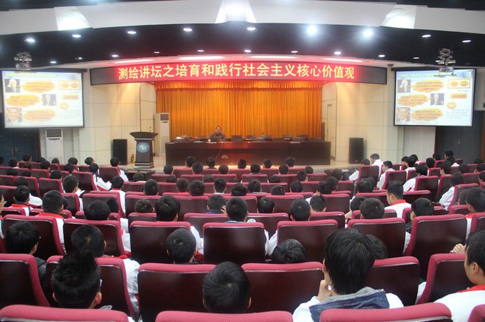 ◆测绘讲坛开讲大学生核心价值观教育。3月6日晚,学院学生处处长王庆东做客测绘讲坛,为该系学生主讲《培育和践行社会主义核心价值观》。