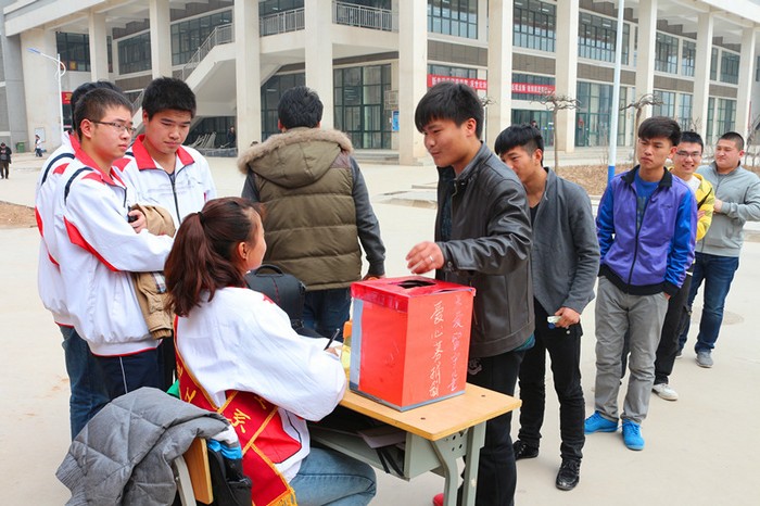 中午放学后,志愿者们在4号公寓楼前布置场地,布置了以女生节为主题的宣传画、宣传展板 。在女生打水时,男生志愿者上前帮忙,将热水瓶送到女生公寓楼下。女生走过许愿树下,也都会用便利签写下自己的心愿。