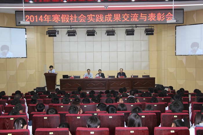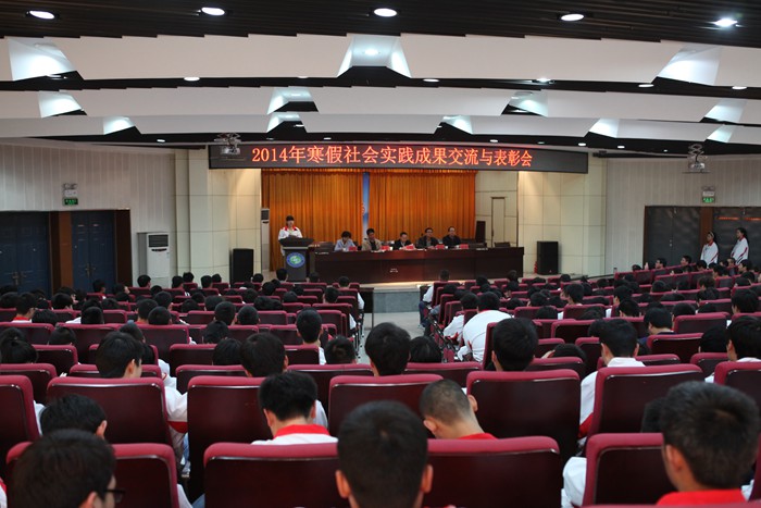 3月26日、27日下午, 陕铁院在临渭校区和高新校区分别召开了2014年寒假社会实践成果交流与表彰会,对122名寒假社会实践先进个人进行了表彰,指导教师代表和获奖学生代表也在会上作了交流发言。学院党委副书记车绪武、副院长王闯出席会议,组织部、学工部、思政部、各系党总支负责人、辅导员班主任、思政部专兼职教师等参加了会议。