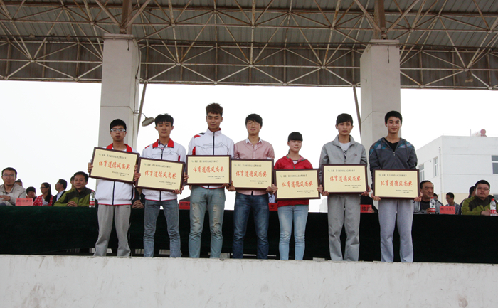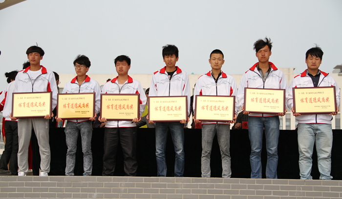 在运动会开幕式团体操表演中获得前三名的系部上台领奖