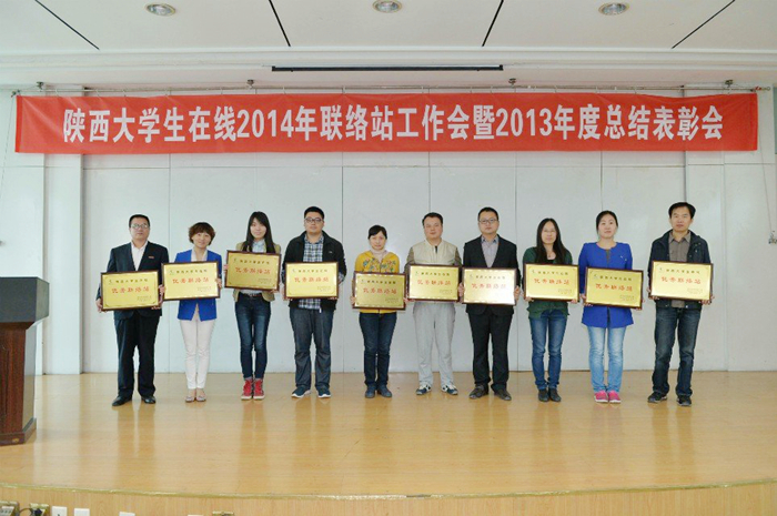 会上,陕西大学生在线对2013年度“优秀联络站”、“优秀联络站站长”和“优秀通讯员”进行了表彰,颁发了2013年全省高校“中国梦 校园情”原创摄影、微电影大赛各个奖项。