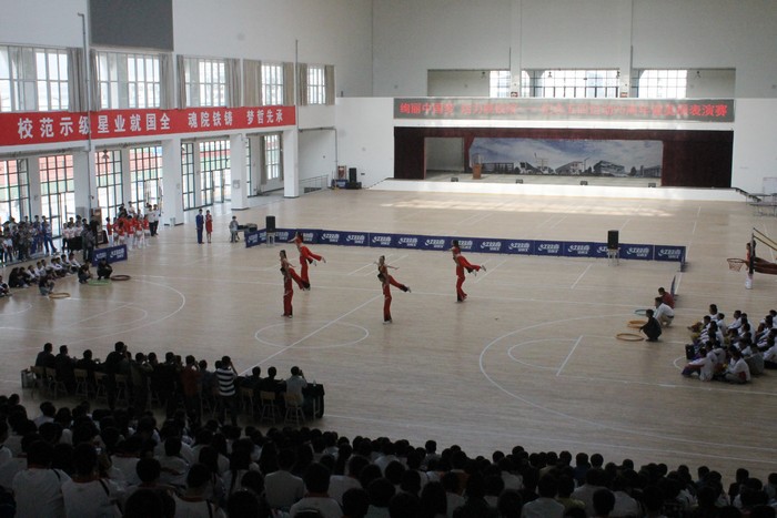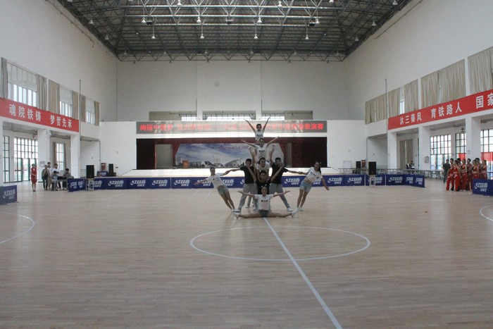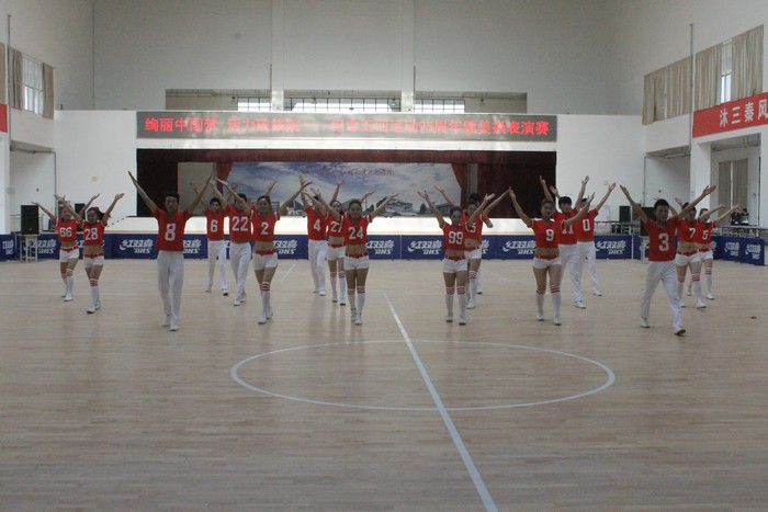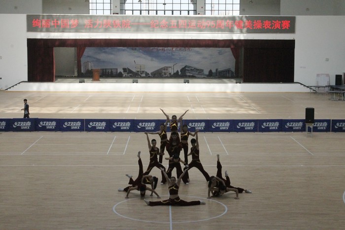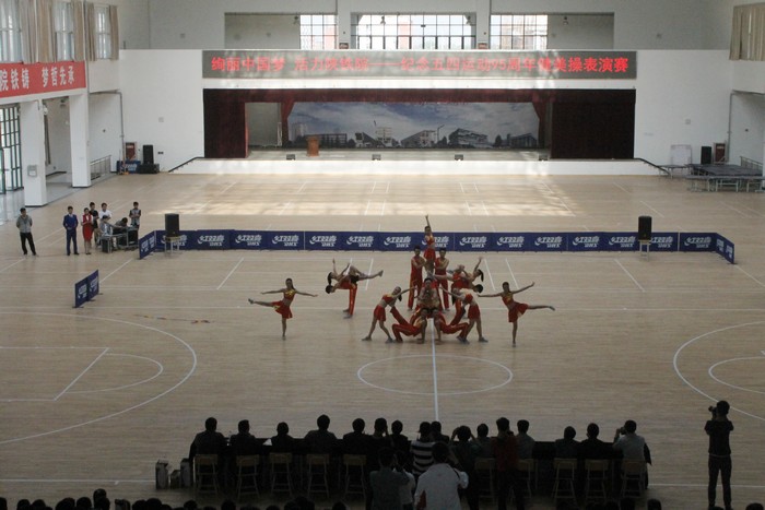 4月29日下午,学院在高新校区大学生活动中心举办了“绚丽中国梦 活力陕铁院——纪念五四运动95周年健美操表演赛”。党委书记王晖、党委副书记车绪武莅临现场,学生处、院团委及各系部领导与近千名学生观看了表演。(杨光)表演赛现场以下为表演赛精彩瞬间:领导与参演同学合影