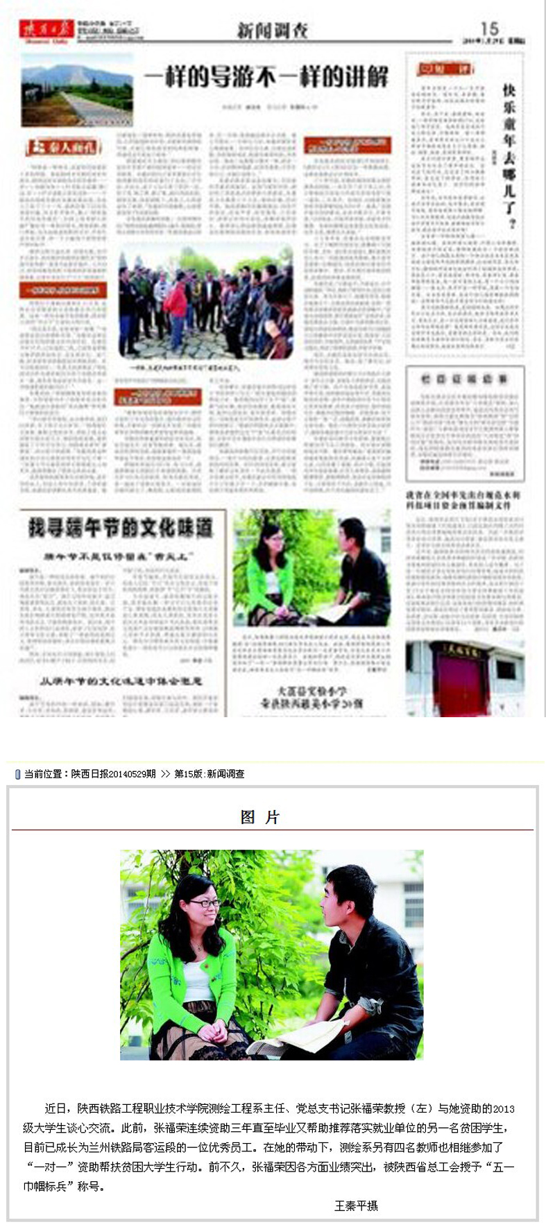 2014年5月29日陕西日报第十五版《新闻调查》图片新闻:张福荣教授爱心资助不断线