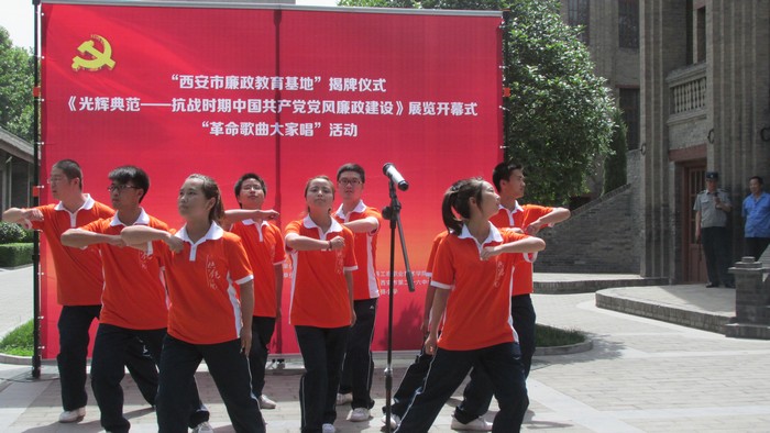 ◆陕铁院建筑系及红研会学生参加“光辉典范——抗战时期党风廉政建设展”开幕暨“革命歌曲大家唱”活动。 5月28日上午,建筑工程系及红研会的学生参加了由西安事变纪念馆承办的《光辉典范——抗战时期党风廉政建设展》开幕暨“革命歌曲大家唱”活动。西安事变纪念馆授予学院“优秀组织奖”。