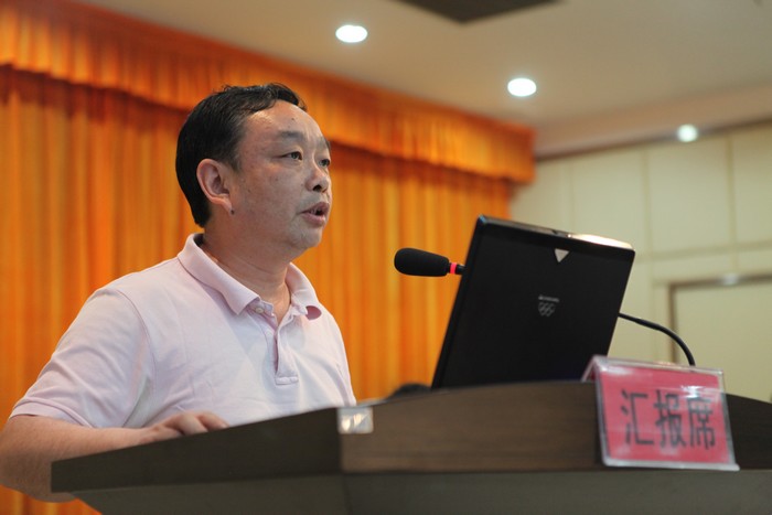 焦胜军宣读了省级验收专家组撰写的学院骨干建设验收报告,并通过视频向与会教师展示了各验收专家对学院骨干建设成果的评价意见。