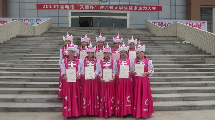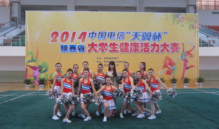 5月29日至30日,由陕西省教育厅主办,省大学生体育协会、西安邮电大学承办的2014年陕西省大学生健康活力大赛在西安邮电大学体育馆举行。本次比赛共有来自全省49所高校的1120名运动员参赛。经过两天的激烈角逐,由体育教学部马婉红老师带领的陕铁院学生代表队荣获高职组中国风舞蹈项目第一名、花球啦啦操项目第五名、团体第五名的好成绩,管理工程系3136班刘亚妮获优秀运动员奖。(马婉红)中国风舞蹈获高职组第一名啦啦操队员合影