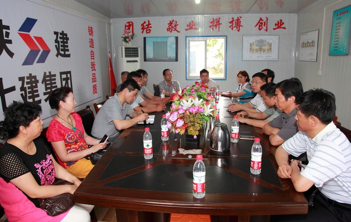 督察组听取工程承建方、施工方以及监理代表的工程施工情况报告