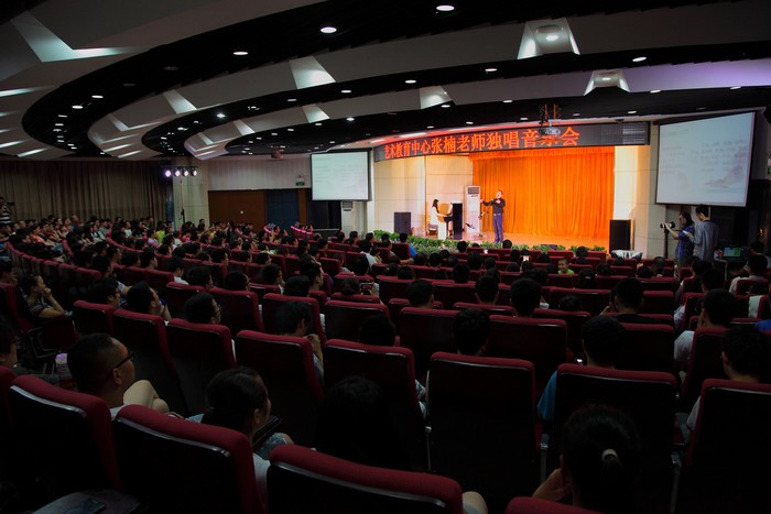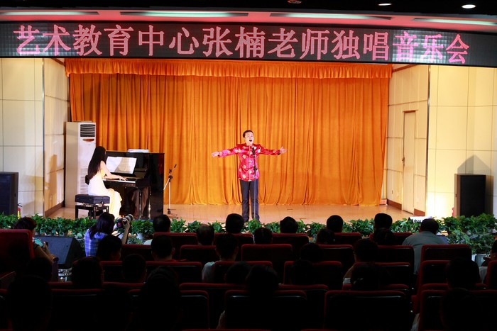 6月17日晚,学院临渭校区学术报告厅座无虚席,气氛热烈,由院工会、学工部、学生处、院团委主办,院艺术教育中心承办的 “张楠老师独唱音乐会”在师生员工的欢呼声中隆重开场。一个半小时的演出,张楠灵活运用美声和民族等多种唱法,演唱了《红豆曲》、《一个美丽的传说》、《枫桥夜泊》等现代及古典歌曲10余首。他那悠扬浑厚的嗓音和饱含激情演绎,不断引起现场观众的共鸣和赞叹并深深陶醉其中,终场谢幕了大家还意犹未尽的不断呼喊“再唱一首!”。学院党委副书记车绪武,党委副书记、纪委书记兼工会主席杨云峰,副院长王闯到场欣赏了音乐会,现场聆听音乐会的教职员工共有400余名。(季露 )