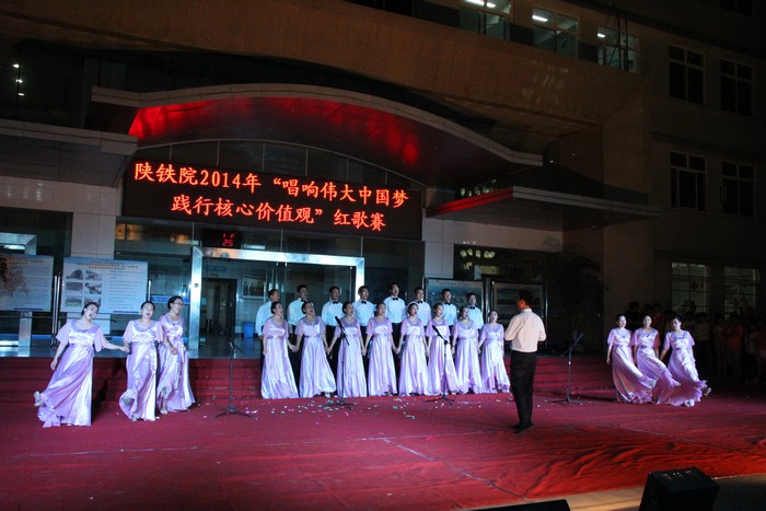 为喜迎建党93周年,6月26日,陕铁院分别在高新和临渭两个校区,举办了以“唱响伟大中国梦 践行核心价值观”为主题的红歌合唱比赛。经过激烈角逐,铁道工程系代表队及道桥一队分别获得高新校区赛场和临渭校区赛场第一名。学院党委副书记车绪武,党委副书记、纪委书记杨云峰,副院长王闯、焦胜军出席观看了比赛,相关部门负责人及师生代表观看了比赛。