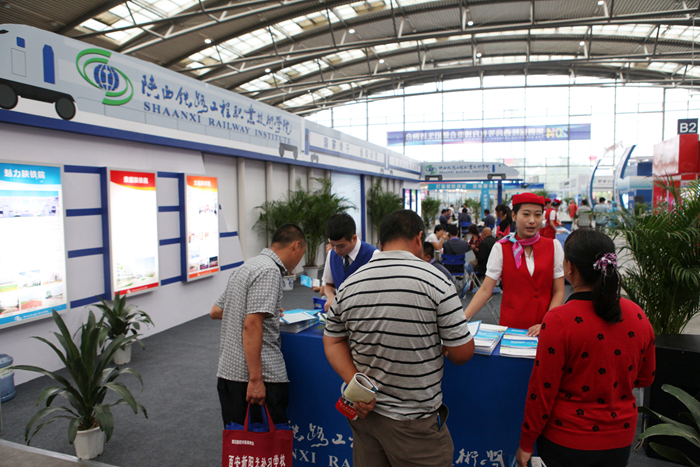 本次展会,学院展位由文字图片区、视频区及和接待区构成,设计风格突出铁路特色、紧扣招生咨询主题,吸引了数千名考生和家长前来咨询报考事宜。展会期间,学院准备的数千多份招生宣传资料全部被考生家长领取一空。教务处、党政办、轨道工程系、机电工程系、管理工程系、党委宣传部、保卫处及学生人员在展位现场热情接待考生及家长,为他们提供了详尽的咨询服务,受到考生及家长们的好评。