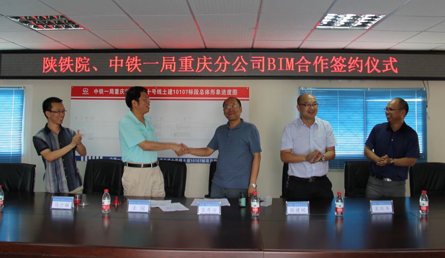校企双方签订合作协议 近日,学院与中铁一局重庆分公司握手,双方将在重庆轨道交通十号线T2航站楼站、渝北广场站等项目开展BIM技术应用合作。7月26日下午,学院副院长王闯,中铁一局重庆分公司副总经理裴秀安、张建明等出席签约仪式,双方代表签署BIM技术合作协议。 这是中铁一局重庆分公司首例BIM技术应用项目,也是学院与中铁一局开展的第3例BIM技术合作项目。(马少雄)