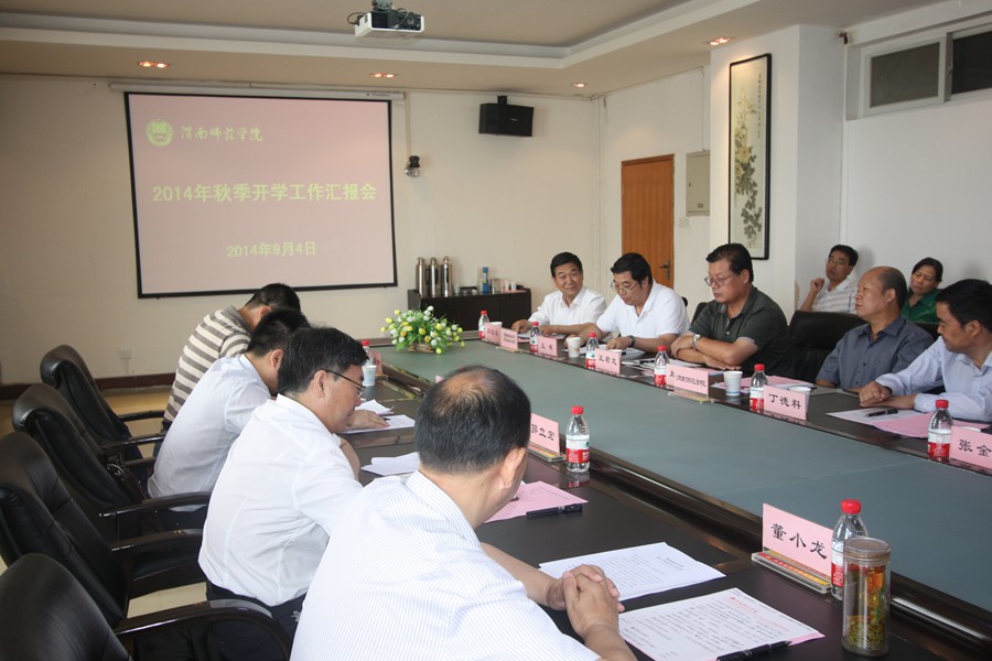 9月4日上午,陕西省教育厅在渭南师范学院召开渭南市2014年秋季开学工作汇报会,省委高教工委常务副书记董小龙、省教育厅副厅长郭立宏出席会议并作重要讲话。学院党委书记王晖、院长王长友参加会议。