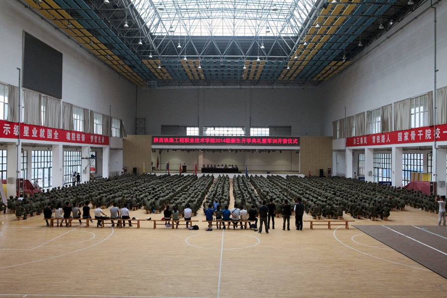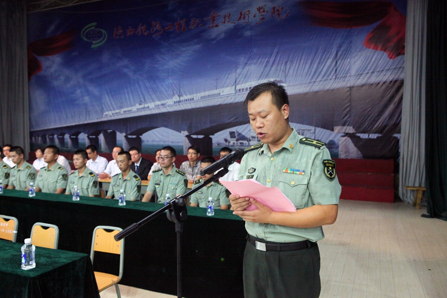 9月9日上午,学院2014级新生开学典礼暨军训开营仪式在临渭校区和高新校区文体中心分别举行,学院党委书记王晖、院长王长友分别向军训团授旗。党委副书记车绪武,副院长王闯、焦胜军,中国人民解放军63785部队技工训练队队长高伟、政治教导员李闯方出席仪式,学院相关职能部门、系部负责人,承担新生军训任务的军训教官及全体2014级新生参加了仪式。仪式由车绪武主持。