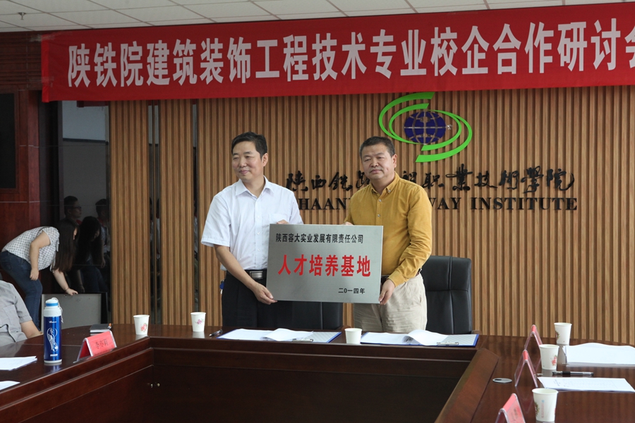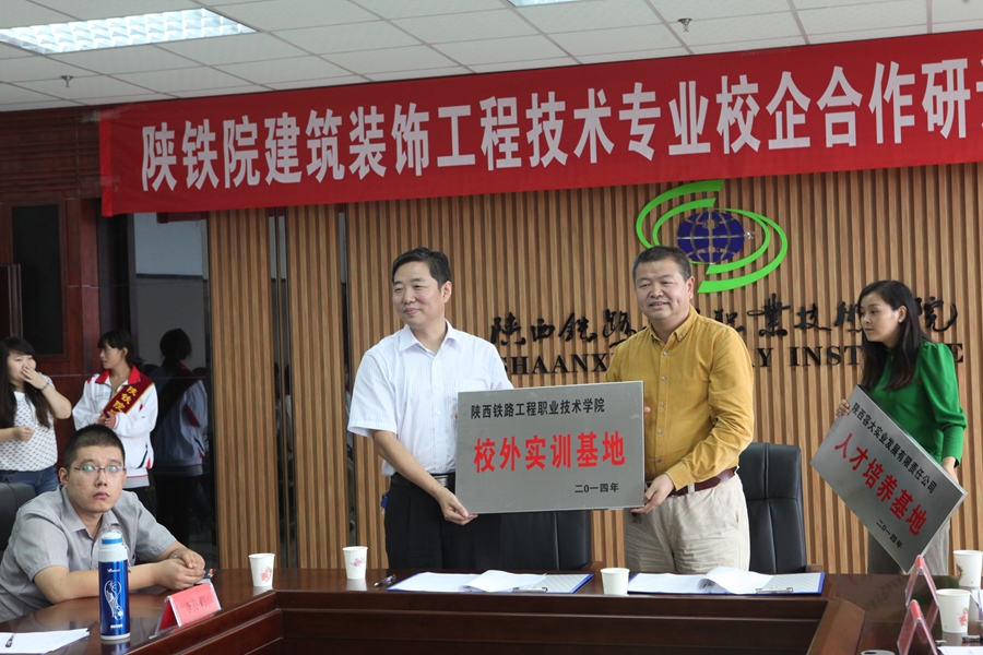9月11日上午,由学院建筑工程系承办的2014年建筑装饰工程技术专业校企合作研讨会暨专场招聘会在高新校区GB322会议室召开。学院副院长焦胜军与陕西容大实业发展有限责任公司总经理李明强签署了校企合作协议,并互授“人才培养基地”、“校外实训基地”牌匾。