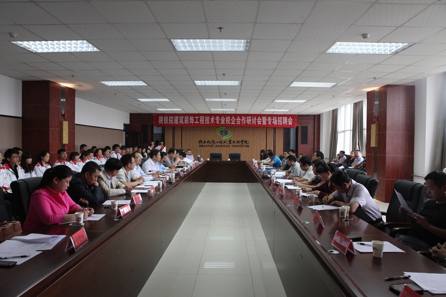 渭南市室内装饰协会会长田春保、渭南市建筑设计处处长张永录,以及装饰行业的16家知名企业总经理出席会议。校企合作处、建筑工程系负责人,该系骨干教师以及建筑装饰工程技术专业12级学生参加了会议。