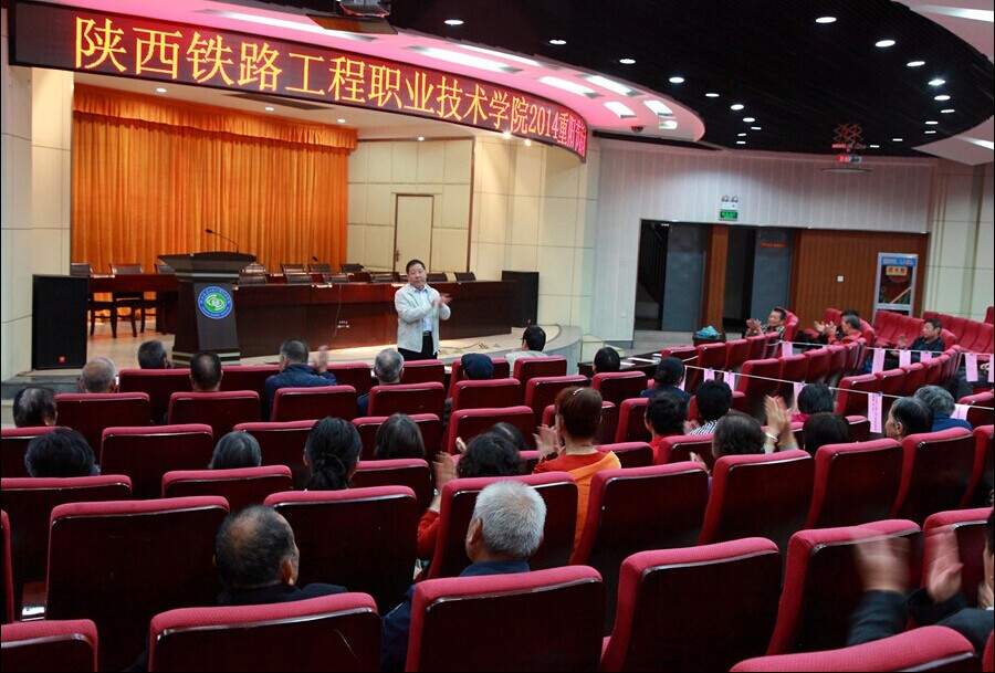 “重阳节”猜谜会会场 9月28日上午,“重阳节”来临之际,学院离退休办公室在临渭校区学术报告厅举办慰问离退休教职工猜谜会,学院在渭离退休教职工六十余人参加了活动。院党委书记王晖到会慰问离退休教职工并讲话。院党委副书记、纪委书记兼工会主席杨云峰也到会慰问并与大家一起参加了猜谜活动。(季露) 王晖在慰问离退休教职工时向大家介绍学院最新发展成果及发展愿景 杨云峰与离退休教职工一起参加了猜谜活动 瞅一瞅,看一看,猜对了就扯断!
