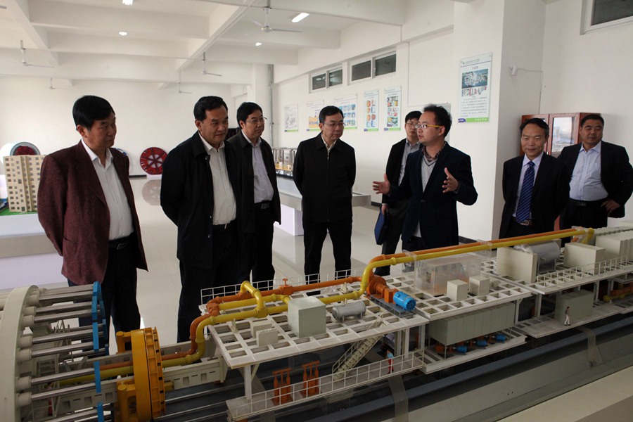 李仲为一行详细考察了高新校区各项建设。在参观项目化教室、工程施工仿真实训室、理实一体工程测量演练室、盾构实训室等实训室时,李仲为不时停下脚步,详细了解专业开设、仪器用途及教学应用等情况。每到一处,李仲为都和讲解教师、工作人员深入交流,细致询问有关情况,提出看法或建议。他对学院创新教育理念,基于工作过程的课程教学模式表示肯定,对学院教师的专业水平和精神面貌给予好评。