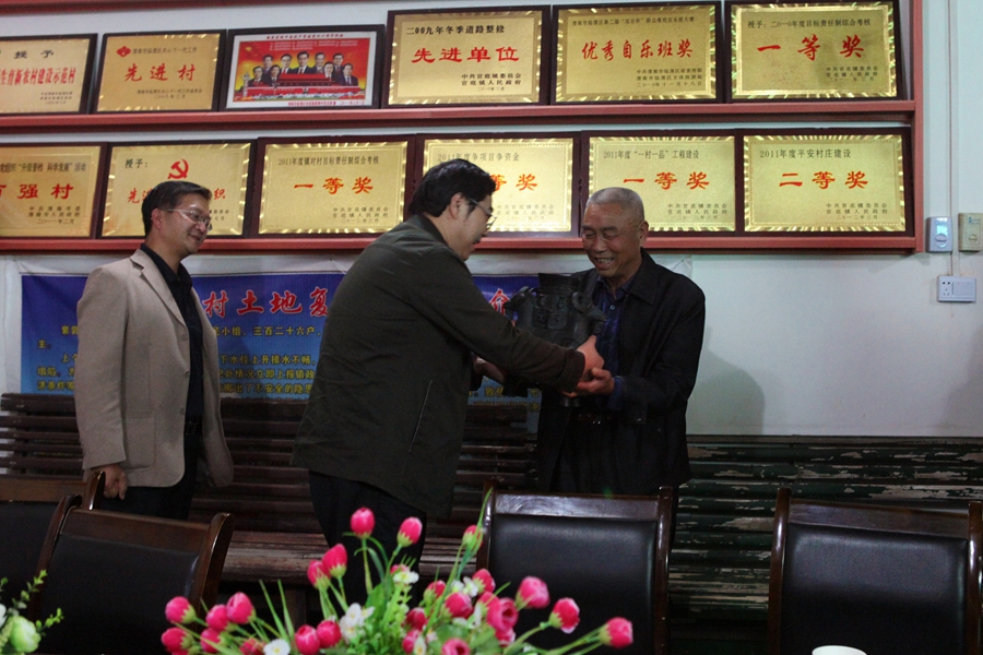 王晖代表学院党委向该村赠送礼物