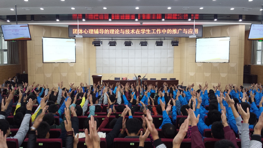 贠丽萍在上午的题为《团体心理辅导的理论与技术在学生工作中的推广与应用》讲座中,全面介绍了团体心理辅导的概念、形式、作用以及在学生工作中的具体运用,并通过现场演示“解开千千结”,形象的展示了团体心理辅导的具体开展过程和意义。整场讲座具有知识性和趣味性,现场气氛热烈,赢得了老师和同学们的阵阵掌声。